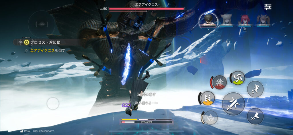 バトルは4人のキャラクターを編成して戦うリアルタイムアクションです。